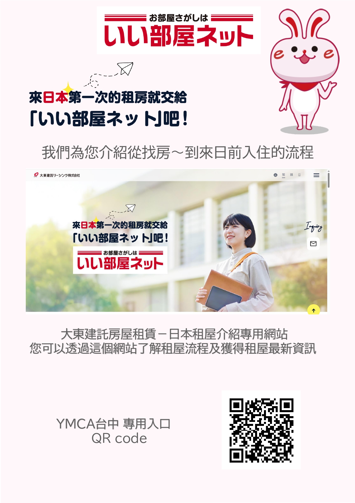 台中YMCA日本留學代辦中心與日本最大不動產集團 「大東建託」 建立特約合作關係, 為即將前往日本的同學,提供量身客製的住宿媒合服務。